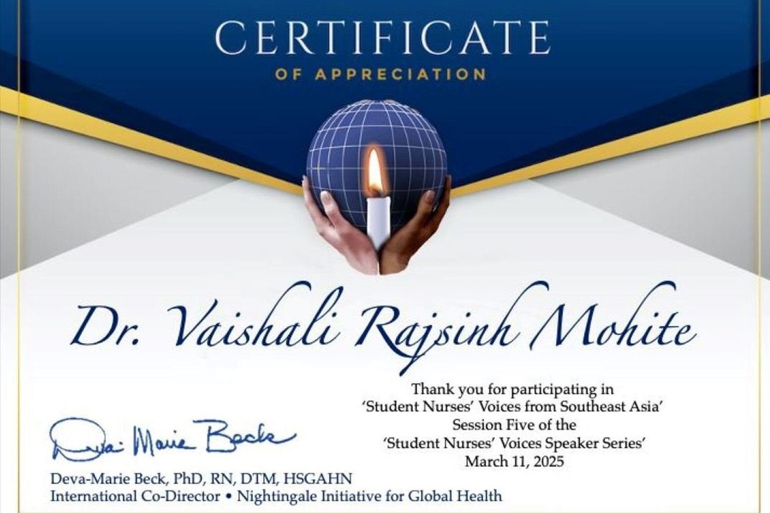 Dr. Vaishali Rajsinh Mohite – Key Speaker at Student Nurses’ Voices Webinar